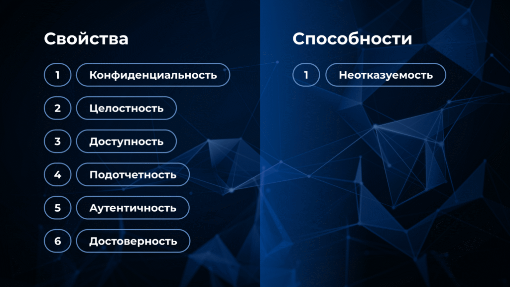 Схема «Все свойства и состояния информации и средств её обработки, необходимые для обеспечения информационной безопасности»